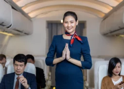 Cabin crew members take care of the customer service through their nature, approachable, friendly manner and enthusiastic self-presentation.